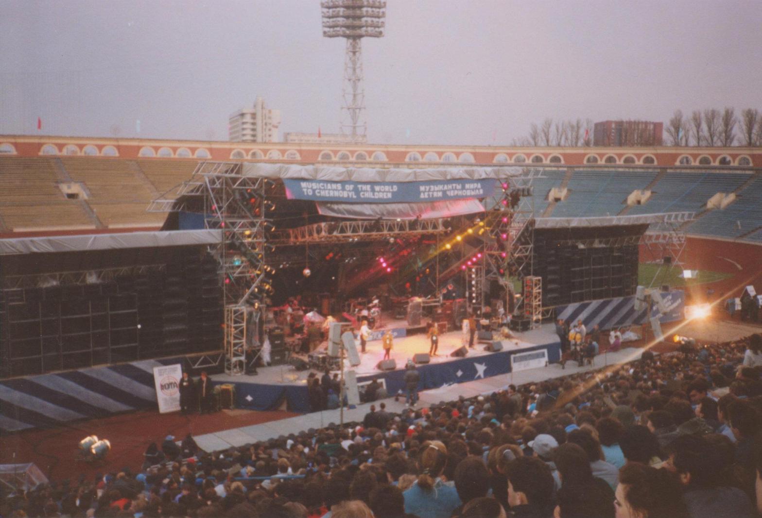 The Children of Chernobyl Benefit Concert was held at the Dynama Stadium in Minsk, (Dynamo Minsk Olympic Stadium) BSSR on April 23 and 24, 1991, five years after the nuclear reactor’s meltdown.