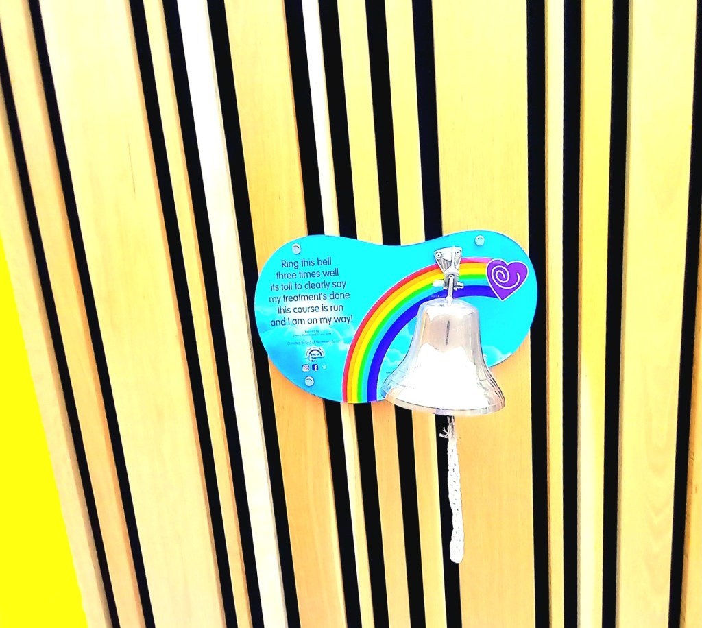 Mounted on a wall, ruffly in the middle of the room, is a large, brass bell, with a thick, cord. Patients are encouraged to ring the bell to signify an end of their treatment, or, after having been informed they are cancer free after a consultation. Everybody present, patients, supporters, staff, applauds enthusiastically. It can be hugely emotional for both patients and spectators. Some take photographs, some tell their stories, out loud, to anyone and everyone.